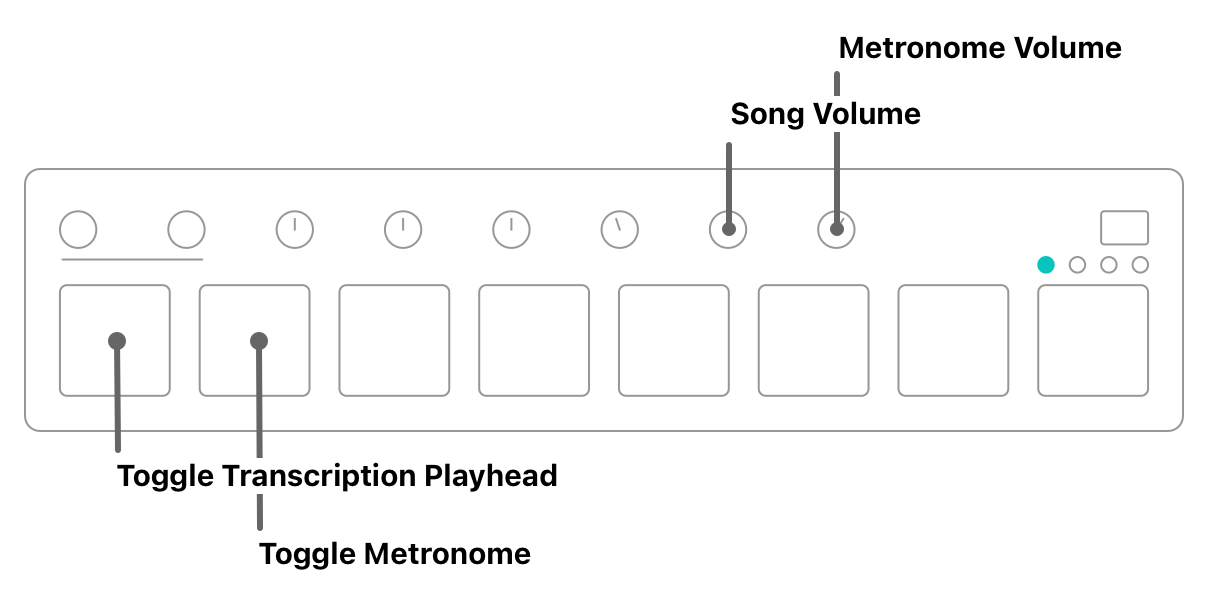Using this configuration, the last two knobs will always control the volume of the song and metronome, no matter what bank is selected on the device.