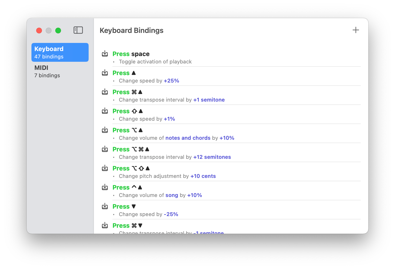 In Capo, you can create and edit your Keyboard Bindings and MIDI Bindings from the same place.