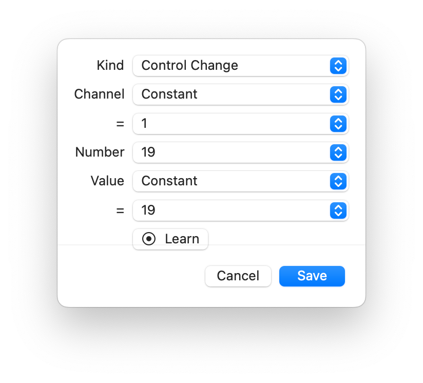 - Open the Learning MIDI Message Chooser